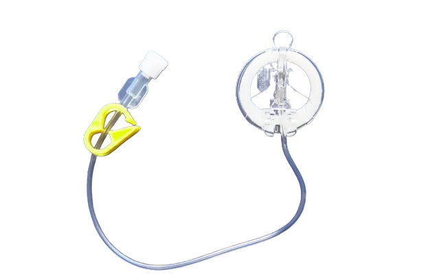 The Directstick Huber Needle Set is meticulously crafted with both healthcare professionals and patients in consideration. Its thoughtful design prioritizes ease of use and comfort. The textured handle ensures a secure grip and enables effortless manipulation and tubing positioning for a comfortable and proper site dressing experience. Furthermore, its compact size minimizes the requirement for dressing materials, while the transparent plastic base facilitates continuous monitoring and examination of the insertion site throughout the therapy duration.